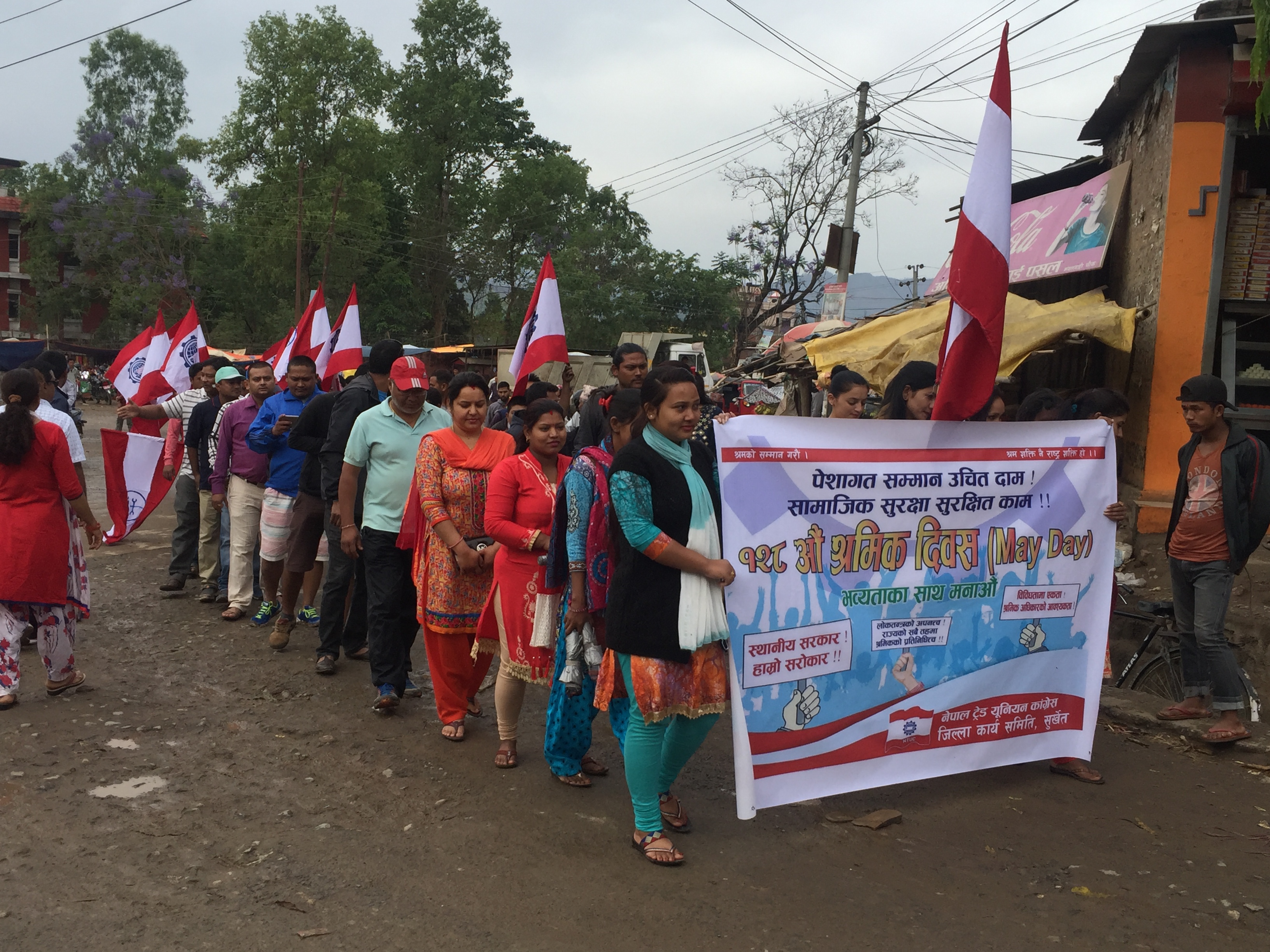 नेपाली कांग्रेसले स्थानीय तहको चुनावका लागि विभिन्न पद र ओहोदामा मजदुरको नेतृत्व र प्रतिनिधित्व गराएको जिकिर गर्दै उनले मजदुरको योगदान नबिर्सन अन्य पार्टीहरुलाइ आग्रह गरे । त्यसअघि ट्रेड युनियन कांग्र्रेसमा आवद्ध विभिन्न पेशागत संघसंगठनहरुको सभागितामा मंगलगढीचौकबाट बाजागाजासहितको ¥याली निकालिएको थियो ।