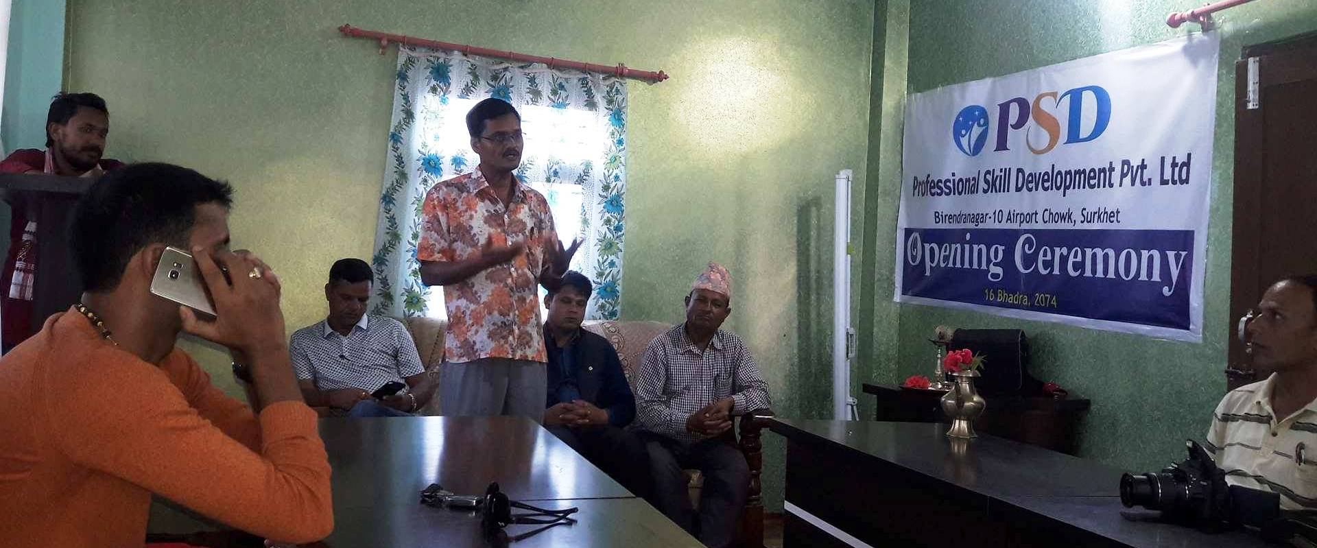 राष्ट्रिय सहकारी वैकका संचालक हरिहर नाथ योगीले सुर्खेतमा व्यवासायिक ज्ञान, सीप दिने संस्थाको आवश्यकता महशुस भैइरहेको वेला यो संस्थाले त्यो आवश्यकतालाई पूर्ति गर्न सुझाव दिए ।
