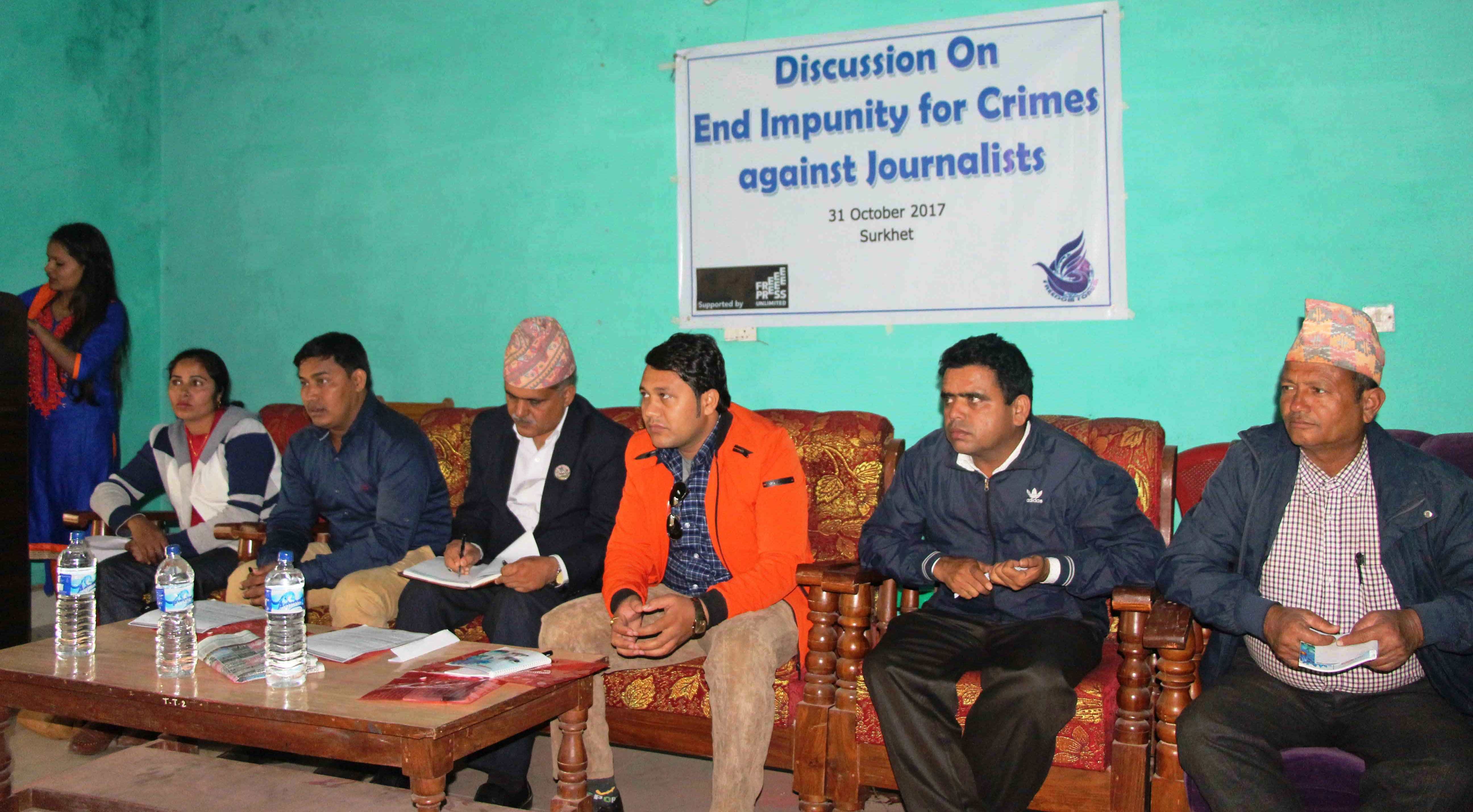 कार्यक्रममा मध्यपश्चिमाञ्चल क्षेत्रीय प्रशासन कार्यालयका क्षेत्रीय प्रशासक महेन्द्रप्रसाद गुँरागाईले पत्रकार विरुद्ध हुने दण्डहिनता अन्त्य गर्नको लागि प्रतिवद्धता व्यक्त गरे । ‘विभिन्न समयमा हुने पत्रकारमाथि हुने घटनाहरु दुःखद छन्’ उनले भने, ‘प्रेस स्वतन्त्रताका घटना हुन नदिन मातहतका कार्यालयहरुलाई पनि निर्देश गर्नेछु ।’ दण्डहिनता अन्त्यका लागि पत्रकार र राज्य दुवैले पक्ष सुधार हुनुपर्ने उनको भनाई थियो । ‘राज्यबाट पनि पूर्ण रुपमा प्रेस स्वतन्त्रताको व्यवस्था हुनुपर्छ’ उनले भने, ‘पत्रकारले पनि परिपक्क रुपमा सूचना प्रदान गर्नुपर्दछ ।’