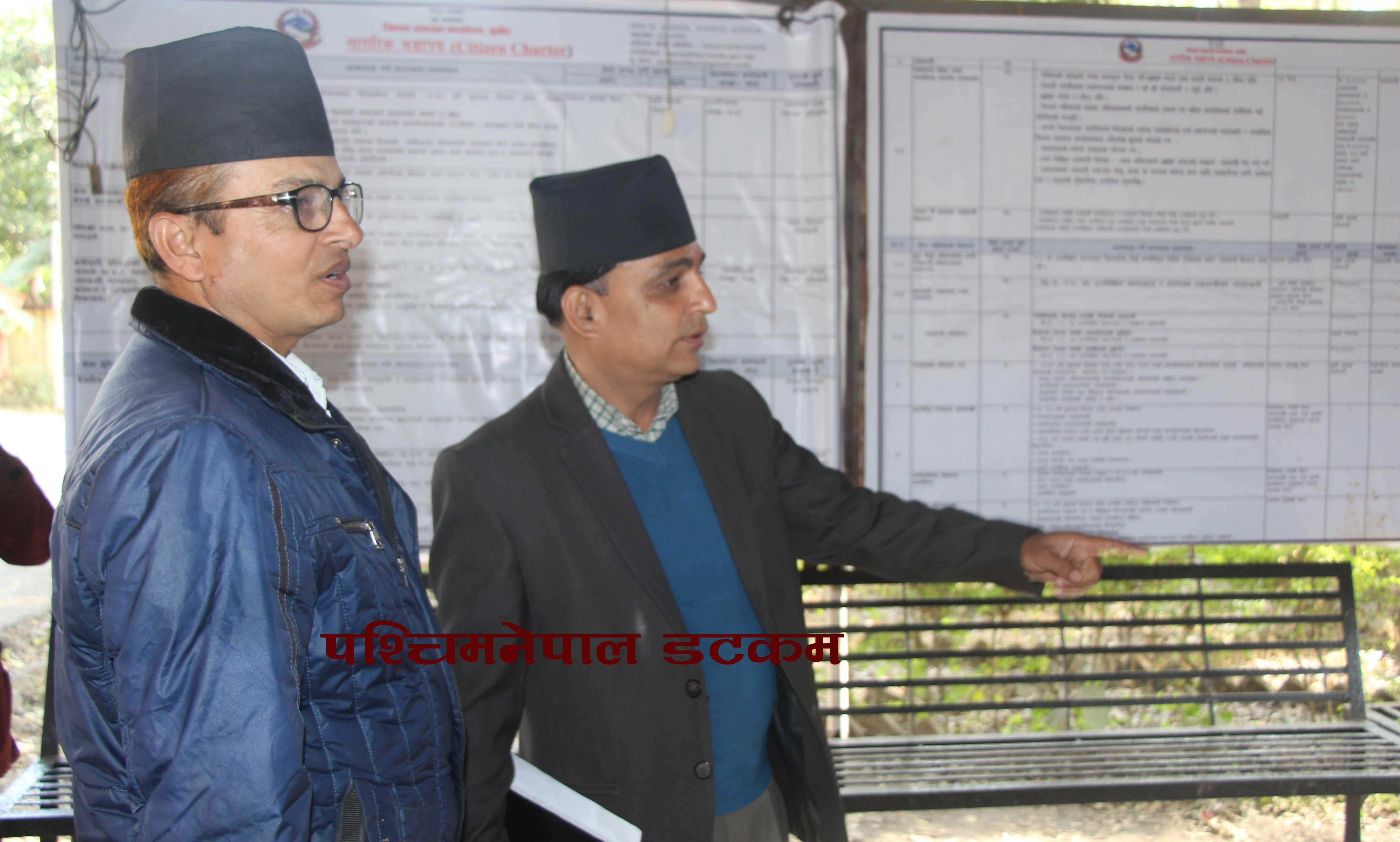 आयोगले मालपोत, जिल्ला प्रशासन, महिला तथा बालबालिका कार्यालय, जिल्ला कृषि, जिल्ला जनस्वास्थ्य, जिल्ला प्राविधिक, जिल्ला समन्वय समिति, वन लगायत कार्यालयहरुको अनुगमन गरेको छ । अनुगमन टाेलीमा अायाेगका अायुक्त पाेखरेलसहित उपसचिव वेदनिधि अधिकारी र लेखा अधिकृत झलक शर्मा पाैडेल छन् ।