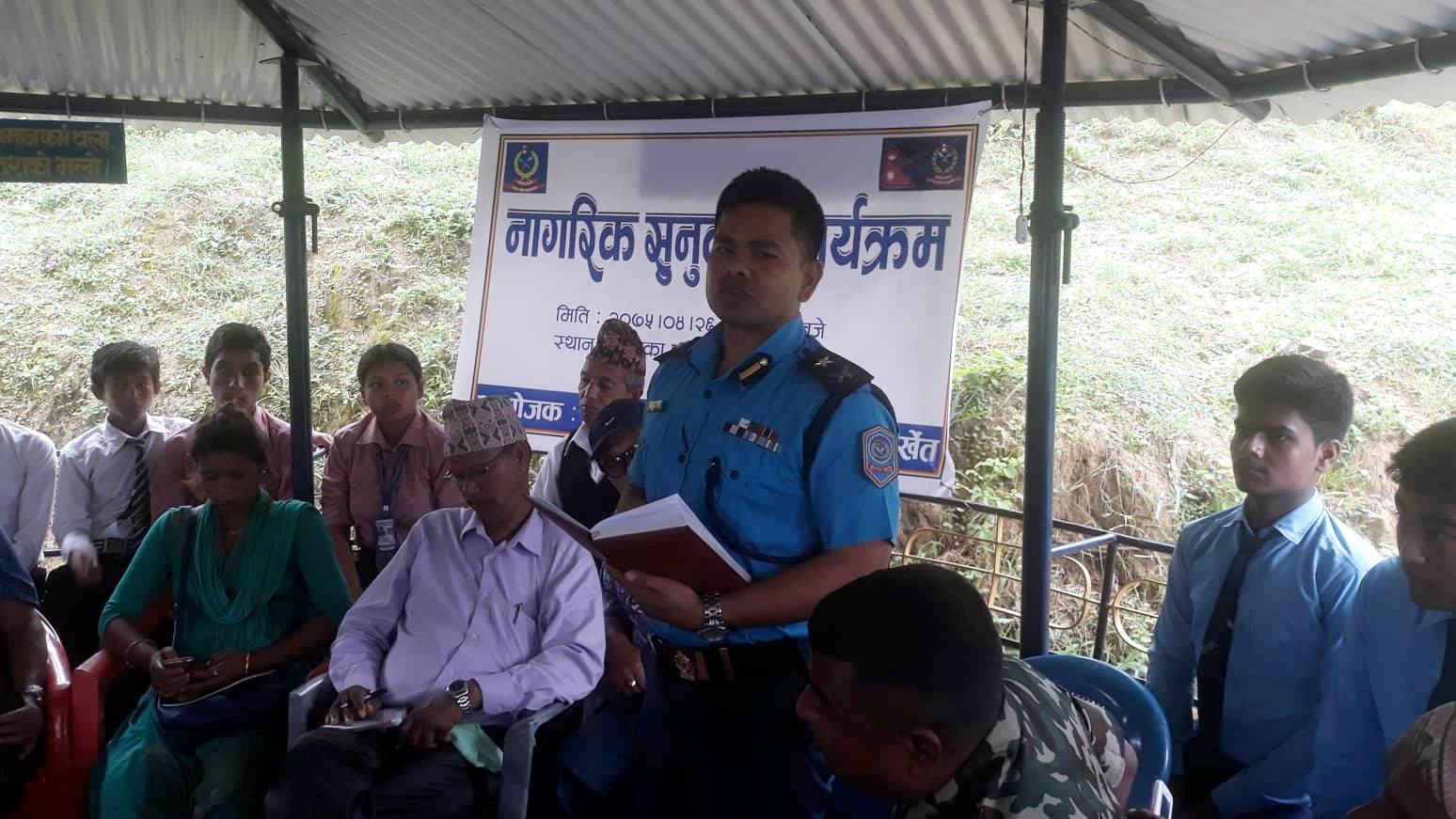 उनले सबै ठाउँमा अहिले प्रहरीको पहुँच पुग्न नसेकाले विनावर्दीका नागरिकहरुले आफ्नो गाउँ–ठाउँको सुरक्षाको लागि प्रहरीलाई सहयोग गर्न आग्रह गरे । कार्यक्रममा सहभागीहरुले प्रहरीको सेवा प्रभावकारी नभएकाले सेवालाई समय सापेक्ष बनाउन जोड दिए ।
