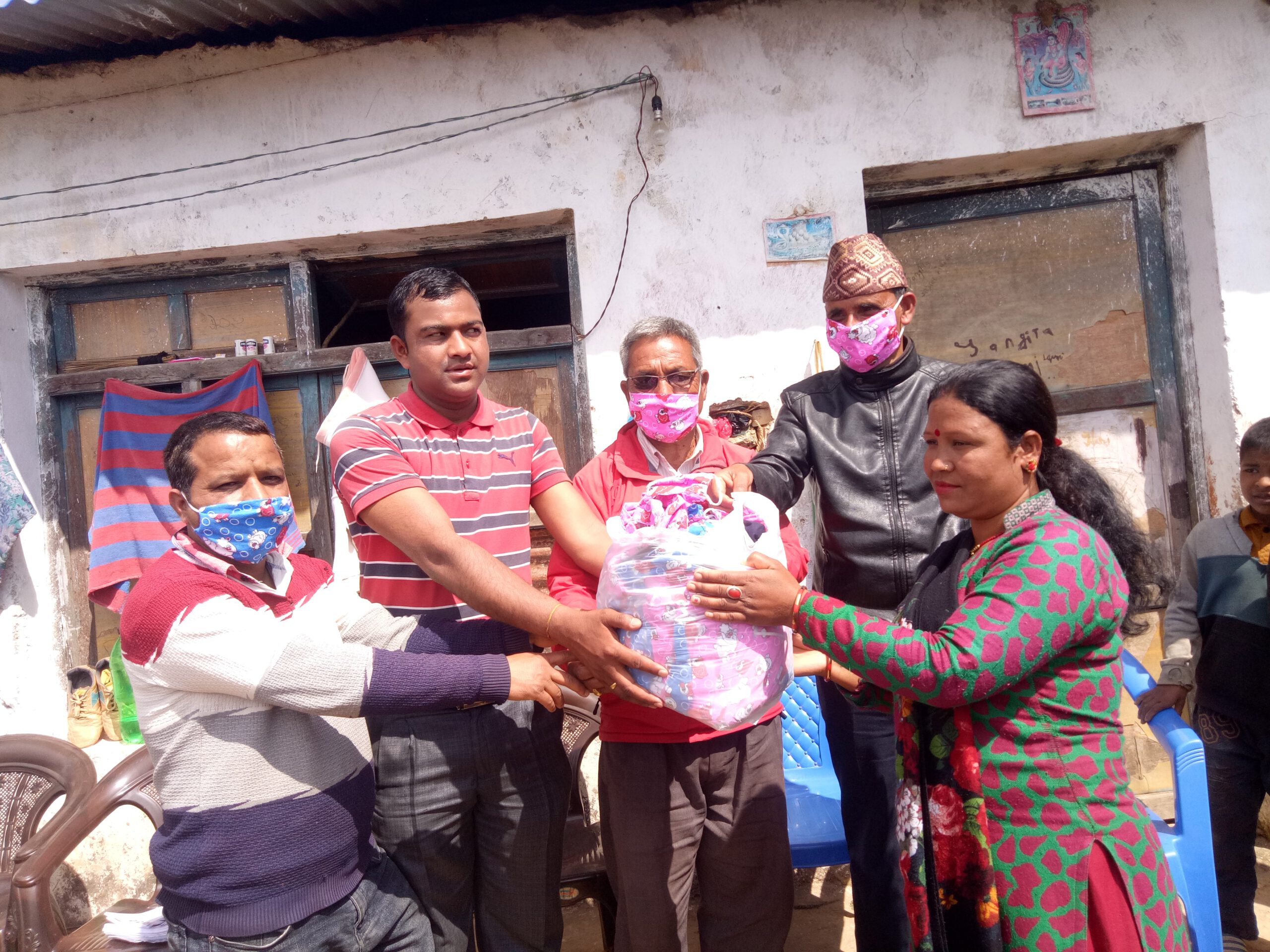 क्याप्सन ः नमुना बस्तीमा माक्स वितरण गर्दै संदिप विक तस्बिर पश्चिम नेपान अनलाइन खबर