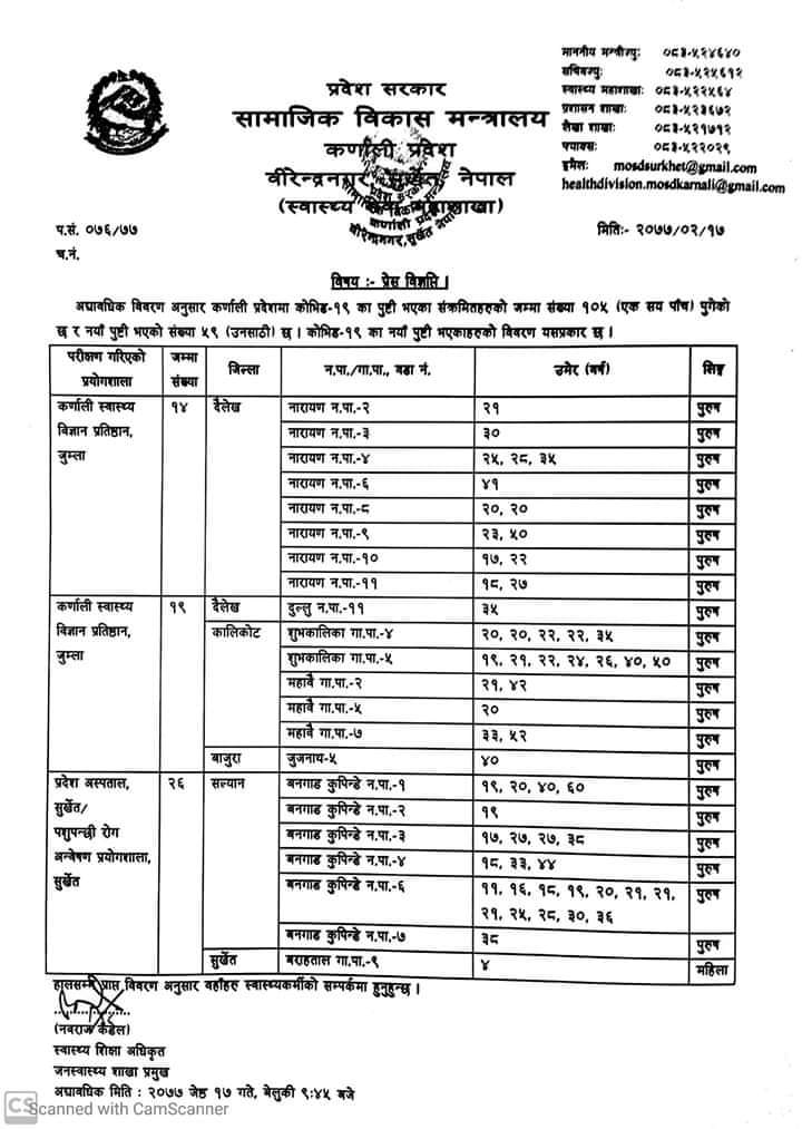 आज एकैदिन ४५जनामा काेराेना पुष्टि, कर्णालीमा सङ्क्रमित संख्या १०५
