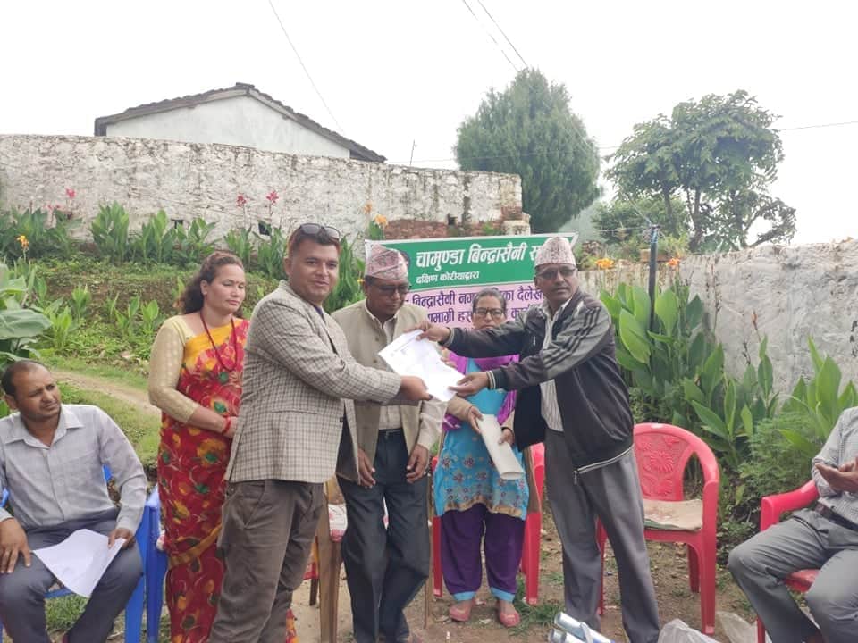 दैलेख -कोरियामा रहेर संगठित चामुण्डा विन्द्रासैनिका युवाहरुले नगरपालिका लाई स्वास्थ सामग्रि सहयोग गरेका छन्। रोजगारिका लागि दक्षिणकोरिया रहेका चामुण्डा विन्द्रासैनि समाज दक्षिणकोरियामा आवद्ध युवाहरुले चामुण्डा विन्द्रासैनिका नाै वटा वडाका वितरण गर्ने गरि एक लाख पचास हजार वरावरको स्टेचर सहयोग गरेका हुन। सोमवार एक कार्यक्रमका विच नेपाल वाट संयोजन गर्नु भएका पत्रकार कृष्ण शाही ले नगर प्रमुख शुर्य वहादुर शाही लाई उक्त सामाग्री हस्तान्तरण गरेका हुन ।