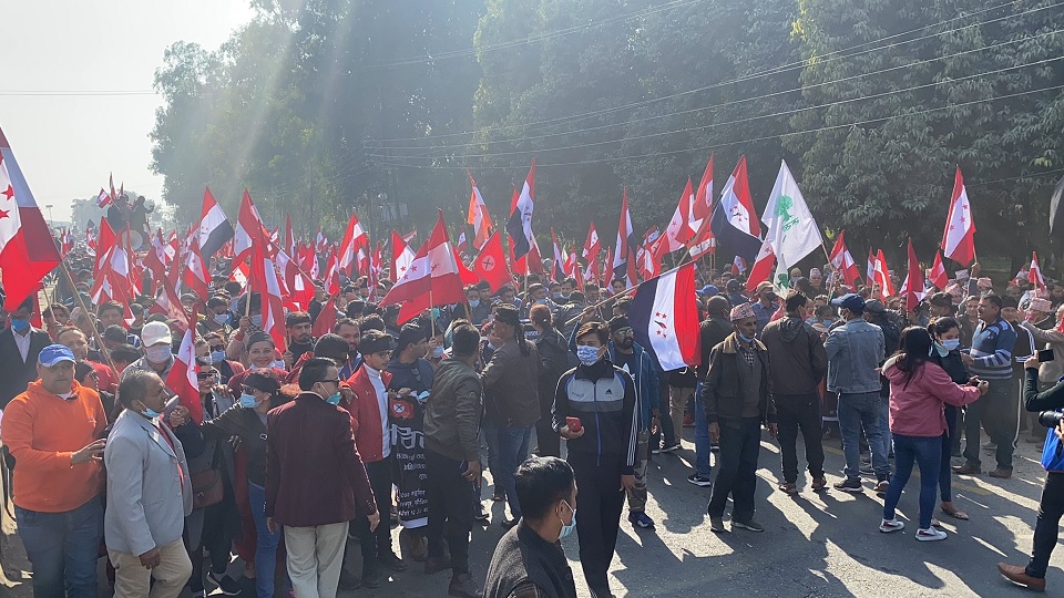 | २९ मंसिर २०७७, सोमबार २०:२७ मकवानपुरको हेटाैडमा आयोजित विराेध सभालाई सम्बोधन गर्दै सभापति शेरबहादुर देउवा काठमाडौं कञ्चनपुर भोजपुर चितवन दाेलखा जाजरकोट अछाम तनहुँ दैलेख