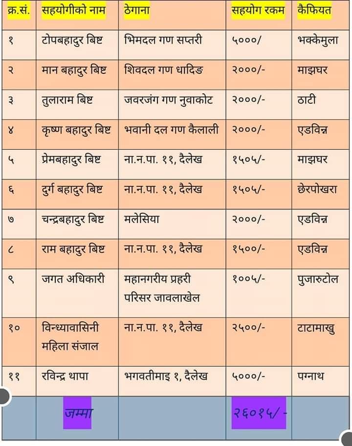सहयोग गर्ने सहयोगी मनहरुकाे नाम