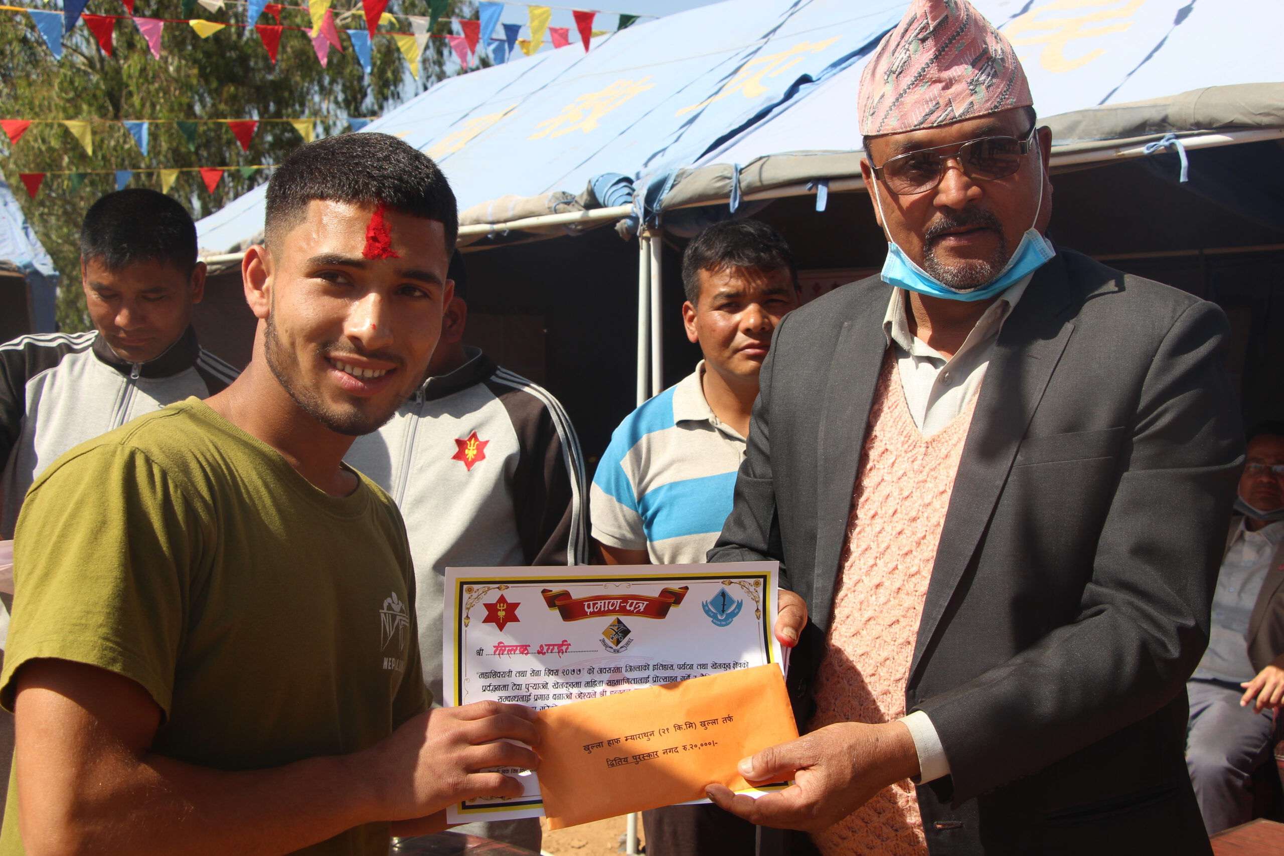 यामराज बिष्ट दैलेख । सेना दिवसको अवसरमा जिल्लामा पहिलोपटक आयोजना गरिएको २१ किमीको खुला हाफ म्याराथन प्रतियोगिता सम्पन्न भएको छ ।सेना दिवस २०७७ को अबसरमा इन्द्रदल गुल्म दैलेखले हाफ म्याराथन तथा पाँच किलोमिटर दौड प्रतियोगिता आयोजना गरिएको हो । महाशिवरात्री सेना दिवस २०७७ को अबसरमा दैलेख जिल्लाको इतिहास पर्यटन तथा खेलकुद क्षेत्रको प्रबद्र्धनमा केहि टेवा पुगोयोस । सैनिक नागरिक सम्बन्धलाई प्रगाढ बनाउने उदेश्यले हाफ म्याराथन र पाँच किलोमिटर दौड प्रतियोगिता आयोजना गरिएको इन्द्रदल गुल्म दैलेखका सेनानी बिके सिंह विश्वकर्माले बताए ।