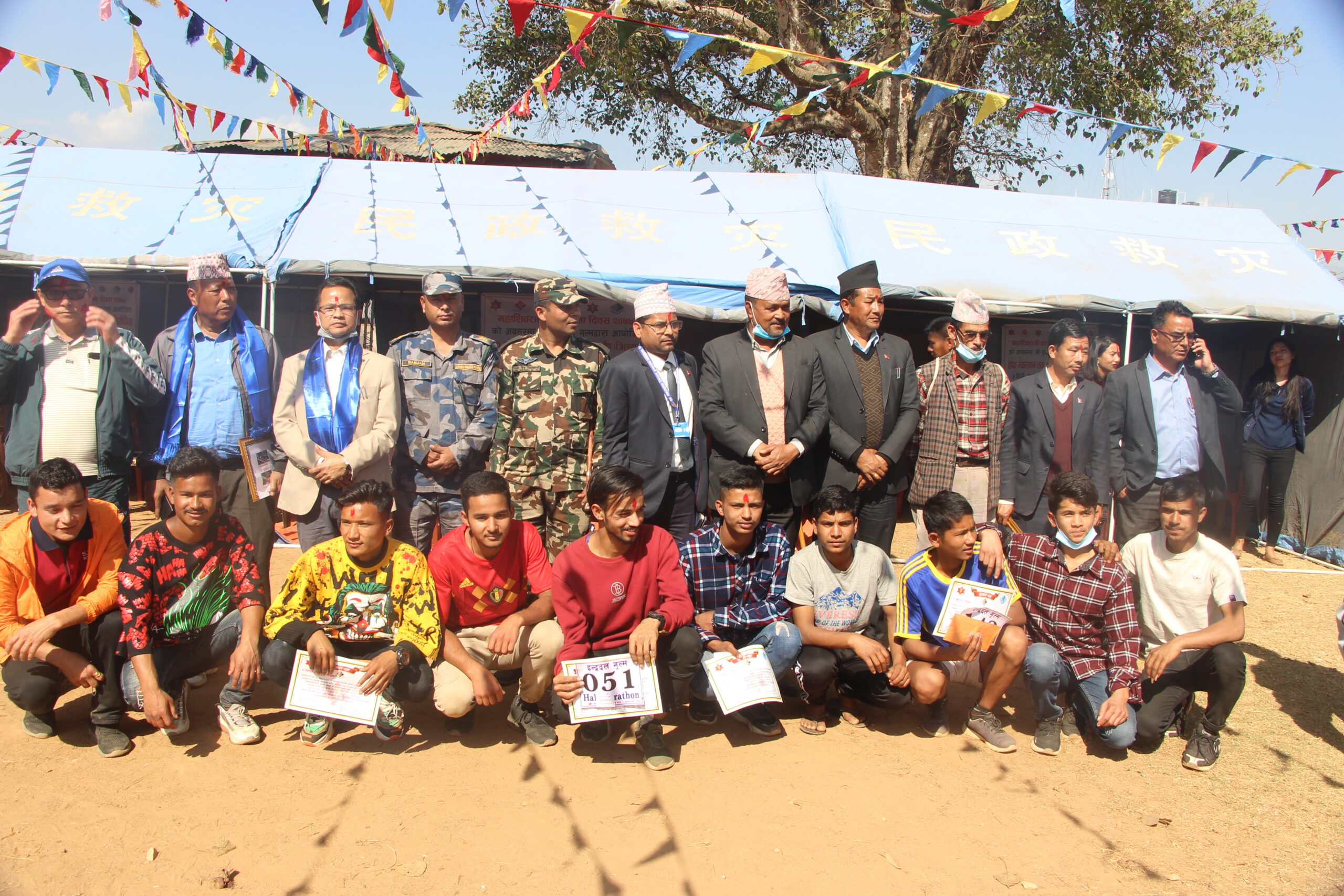 हाफ म्याराथन प्रतियोगितामा खुला तर्फको उपाधी खड्ग बहादुर खड्काले उपाधी हात पार्न सफल भएका छन् ।उपाधिसँगै नगद ३०हजार प्राप्त गरेका छन्।खुला तर्फको हाफ म्याराथनमा तिलक शाही द्धितिय भएका छन् । द्धितिय ्भएका शाहीले उपाधिसँगै नगद २० हजार हजार रुपैयाँ पुरस्कार प्राप्त गरेका छन् । विरेन्द्रप्रसाद भट्टराई तृतिय भएका छन् ।भट्टराईले उपाधिसँगै नगद १०हजार प्राप्त गरेका छन् ।हाफ म्याराथनको जिल्लाबासी तर्फको उपाधी यमराज बिसीले हात पारेका छन् ।बिशीले उपाधिसँगै नगद ४हजार प्राप्त गरेका छन् ।नेत्रप्रसाद कार्की द्धितिय भएका छन । कार्कीीले उपाधिसँगै नगद ३हजार प्राप्त गरेका छन् ।बबिन जैसी तृतिय भएका छन्।जैसिले उपाधिसँगै नगद २हजार प्राप्त गरेका छन्