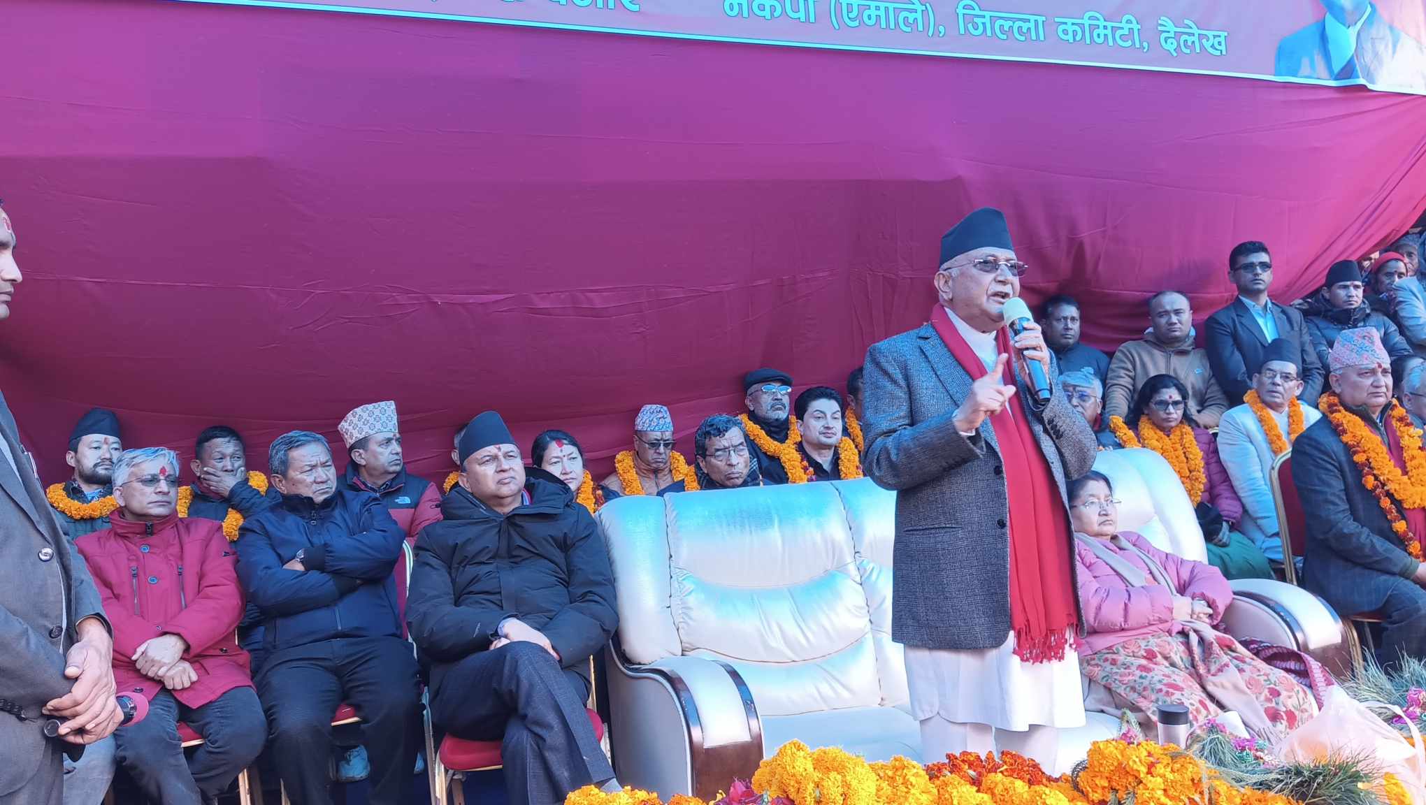 ‘दैलेखमा भएको पेट्रोलियम अन्भेषणका नेतृत्व लिएको एमालेले अपुरो भएको मध्यपहाडि लोकमार्गलाई पुरा गर्ने, दुल्लुलाई स्माट सिटी बनाउने, ३८६ किलोमिटर छोटो बाटोमा तिब्बत जोड्ने कुरादेखि कृषिको आधुनिकिकरण कसरी गर्ने रु भन्ने कामको नेतृत्व एमालेले गर्छ,’ पुर्वप्रधानमन्त्री समेत रहेका अध्यक्ष ओलीले भने, ‘दैलेख जिल्लाको समग्र विकासका संभावनाका बारेमा हामीले जिल्लाका राजनीतिक दलहरुसँग छलफल गरेका छौं ।’यहाँको विकास र समृद्धीको सपना साकार पार्न हामीले कार्यान्वयनको नेतृत्व लिन्छौं । वालवालिका, शिक्षा, स्वास्थ्यका सन्दर्भमा एमालेले थुप्रै काम गरेको छ।