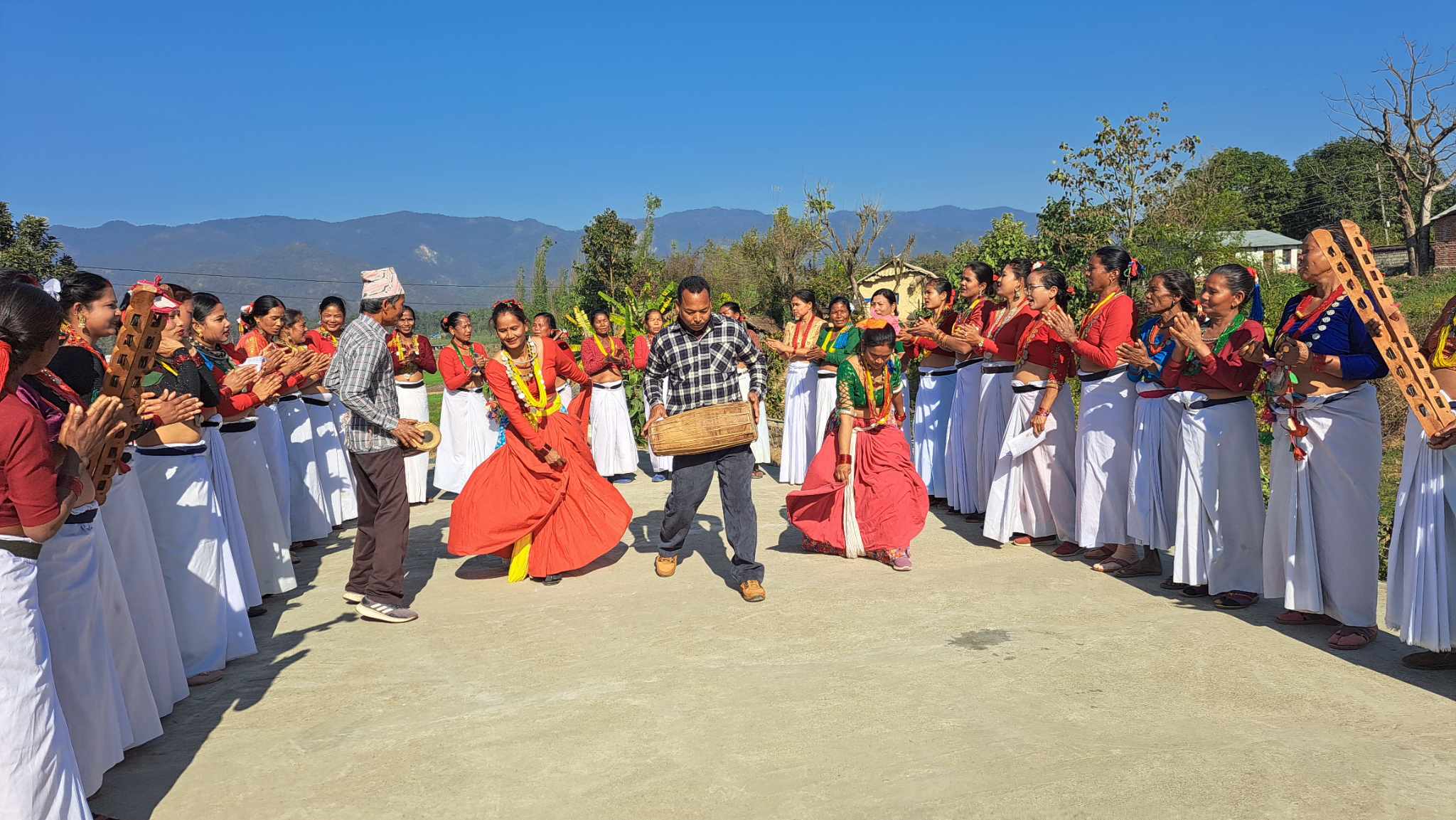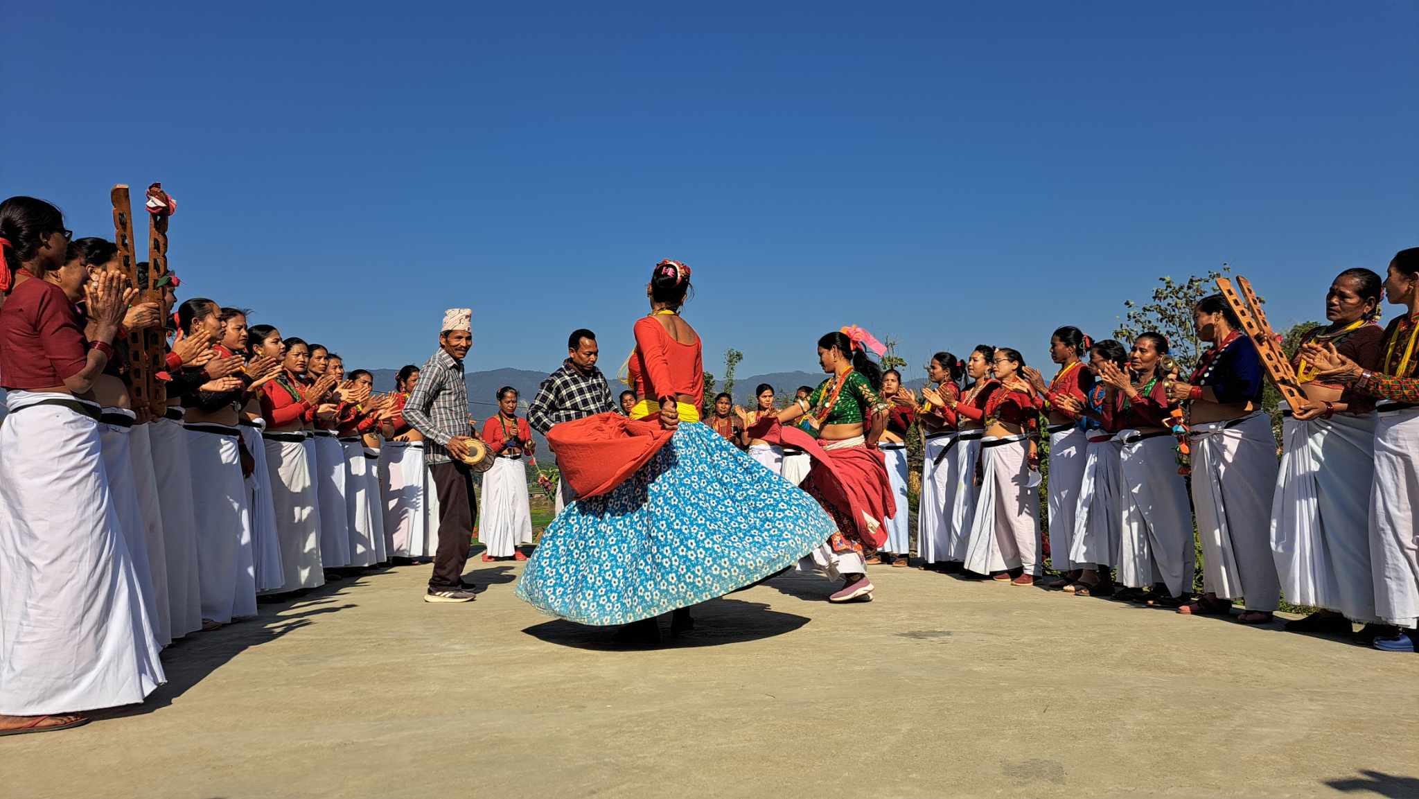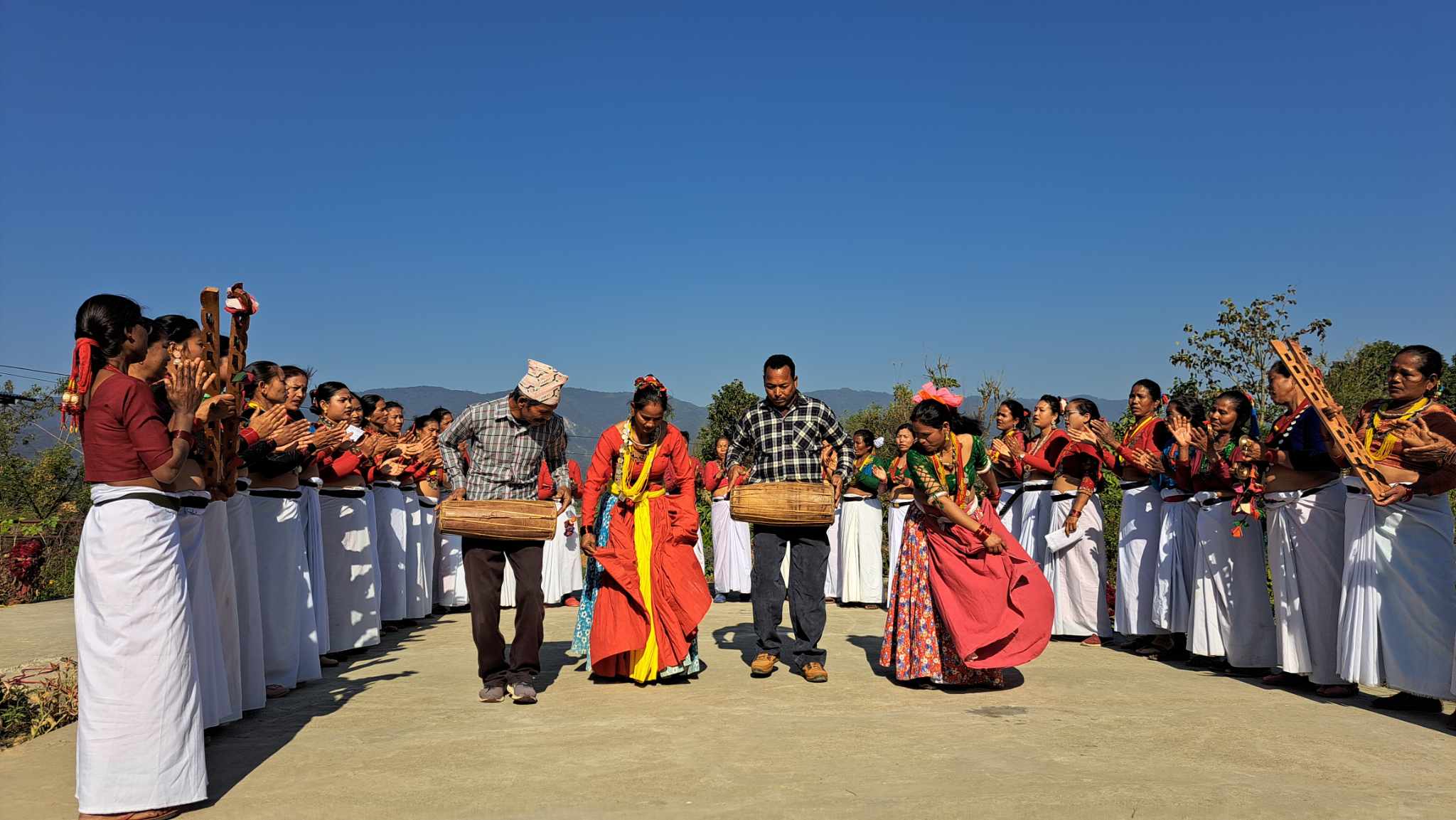 पश्चिम नेपाल | २९ माघ २०८०, सोमबार १२:१९ बाँकेको गाभर भ्यालीमा रहेका थारु समुदायहरुले पाहुनाहरुलाई थारु परिकारदेखि थारु संस्कृती नाचहरु देखाउँदै । पछिल्लो वर्षहरुमा गाभर भ्यालीमा सुविधा सम्पन्न होमस्टे बनेसंगै आन्तरिक तथा बाहिरिए पर्यटकहरु पुग्ने गर्दछन् । तस्विर ः गोविन्द केसी